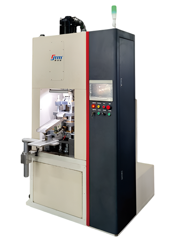電感自動生產線是針對T-CORE 1214/20/25/30系列產品設計的自動生產線,自動線包含:植入機、視覺檢測、填粉、線性搬運模組、四軸機械手、雙缸伺服熱壓機等組成。同一生產線通過變更產品相關模組部品,可切換共用。